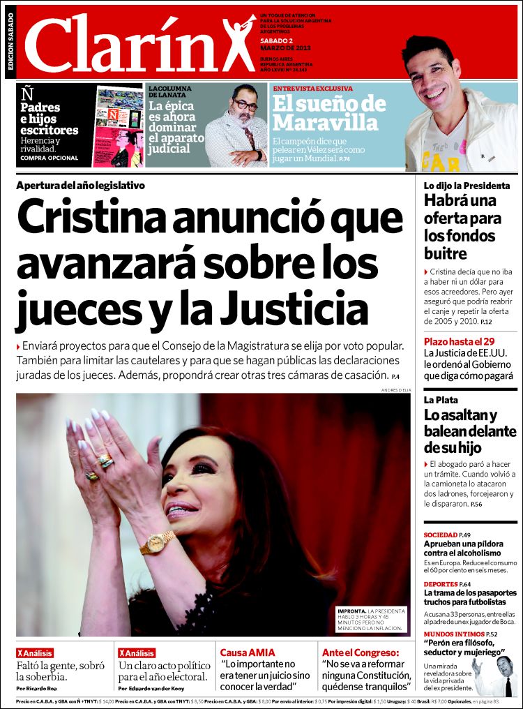 La tapa del diario Clarín incluye: